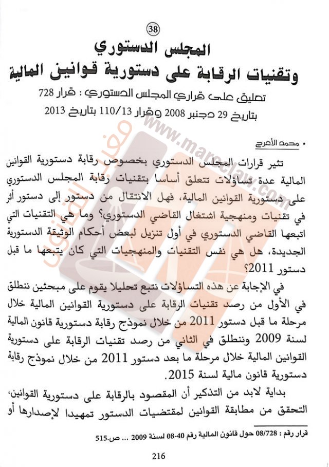 الأعرج : المجلس الدستوري و تقنيات الرقابة على دستورية قوانين المالية